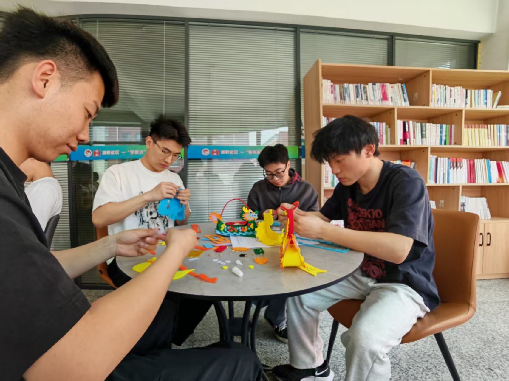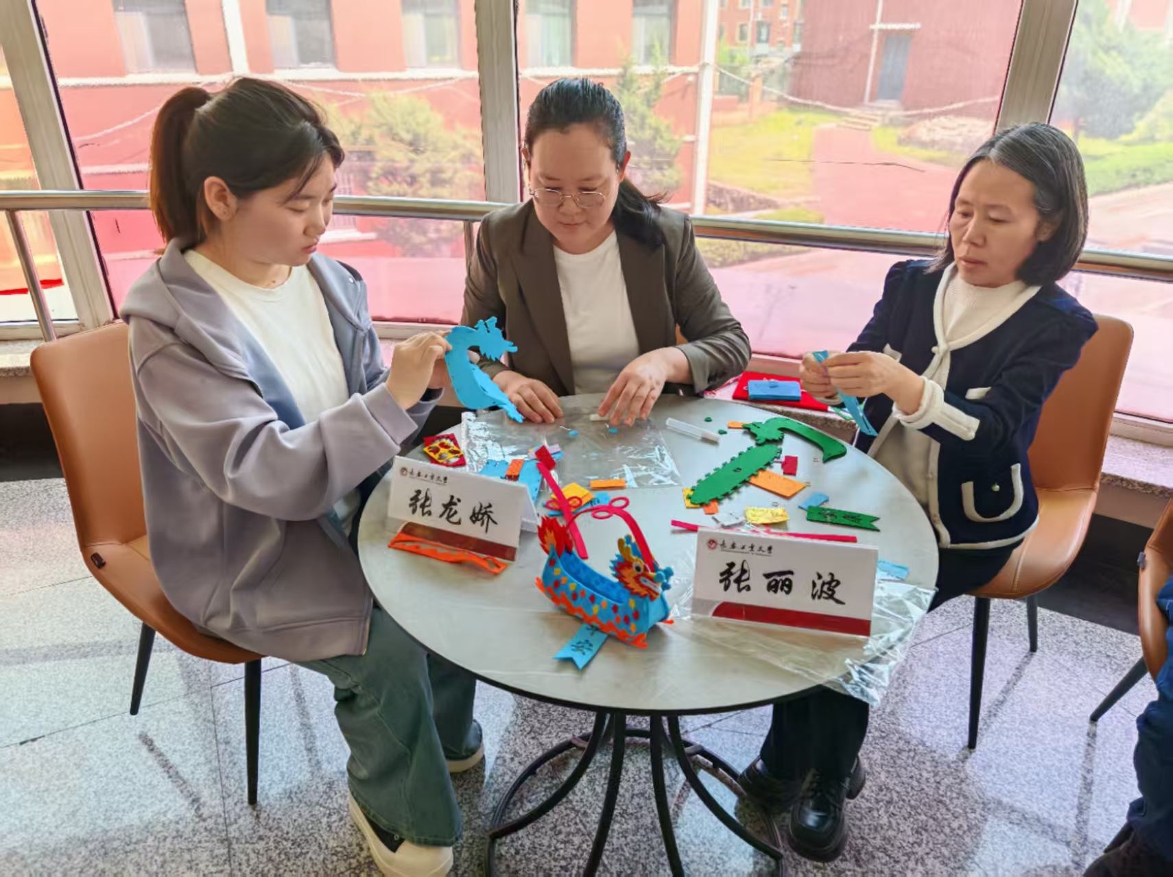 活动特别邀请张丽波老师、杨楠老师、张龙娇老师、杨聿博老师一同参与,与同学们围坐交流,共同体验传统节日文化,传递心理健康理念。现场其乐融融,氛围温馨,同学们一边制作精美的龙舟,一边讲述端午文化的寓意和心中的“阳光故事”,在动手与交流中拉近了彼此的心灵距离。