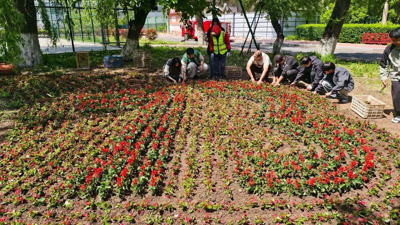 公司联合多部门开展劳动教育实践 ,师生携手播种"校花"扮靓南湖校区