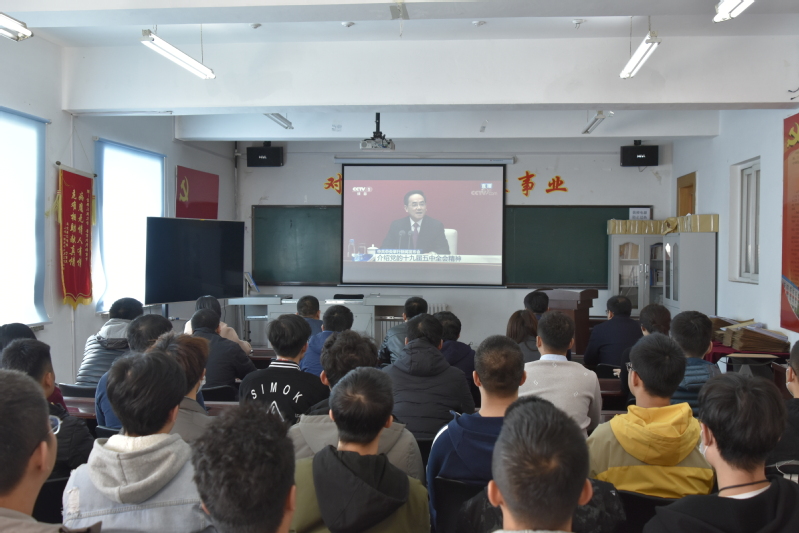 本网讯(通讯员 王潇猇)10月30日上午10时,中共中央就党的十九届五中全会精神举行新闻发布会,公司党委成员,全体党支部书记,各系、中心主任副主任,全体政工干部和各年级员工代表在1462会议室集中观看了现场直播,其他无课的师生通过网络进行学习。