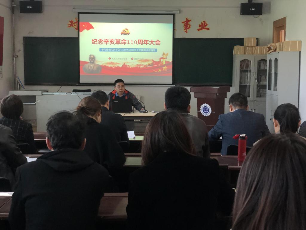 本网讯(通讯员 周子明)10月20日,伟德victor1946组织全体教师进行政治理论学习,认真学习贯彻习近平总书记在纪念辛亥革命110周年大会上的重要讲话精神,学习会由党委书记李奇涵主持。