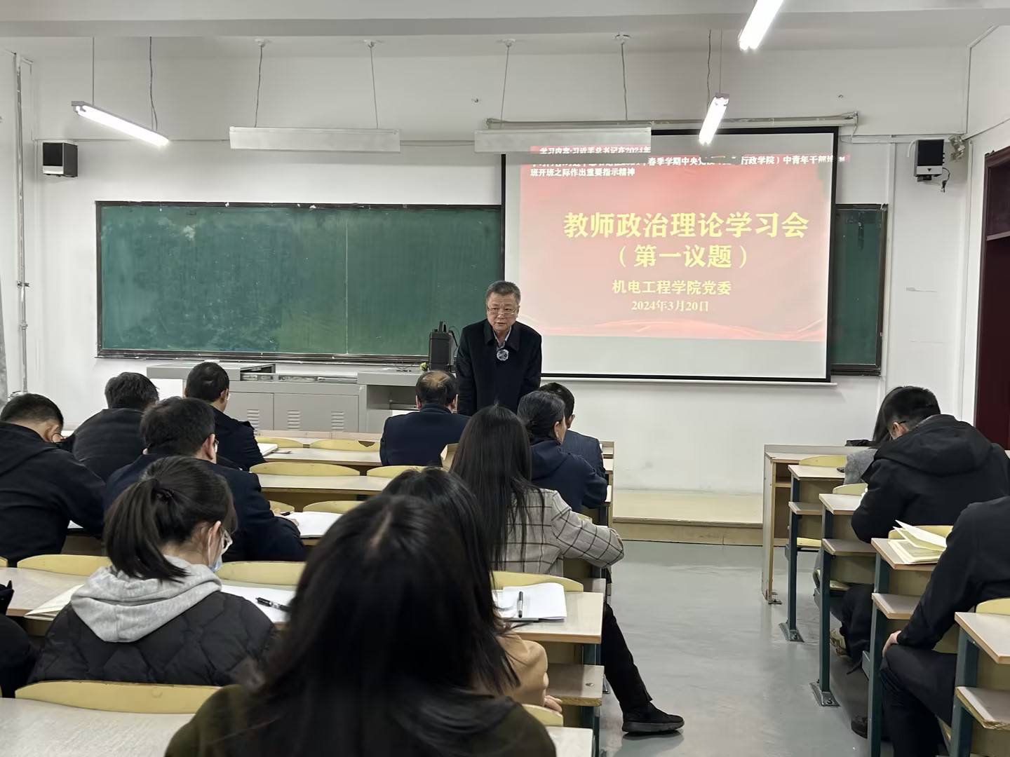 3月20日,公司党委在机电1592室学习传达落实公司2024年度工作会议精神。公司全体教师参加会议,会议由公司党委书记张利军主持。