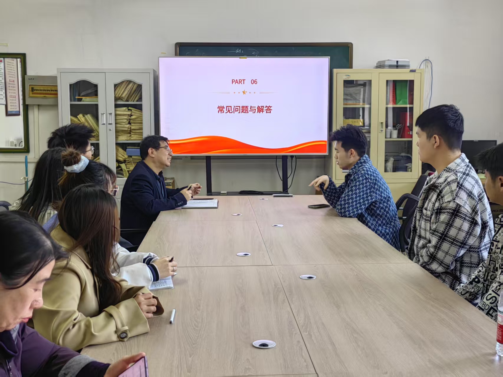 在互动问答环节,同学们结合备考实际踊跃提问:朱秋悦同学就“如何平衡备考节奏与心理调适”提出困惑,夏靖峰同学围绕“高质量复习资料筛选渠道”寻求建议,白博文同学聚焦智能制造专业考研方向,白乐阳同学则关注“如何合理安排备考时间”问题。张凤、刘小勇、吕长松、杨慧香等老师也结合自身丰富的教学经验与对考研形势的精准把握,从专业角度逐一解答。并指出,考研备考要坚持“兴趣导向与能力培养”,在夯实基础的同时注重知识体系构建,通过理解性学习提升效率;面对备考压力,需建立科学的作息机制,在专注学习与适度放松间找到平衡,以可持续的学习状态应对长期挑战。