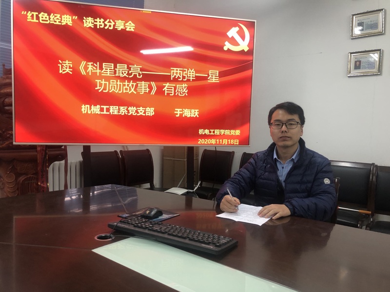 此次分享会分别由赵巍谈读《中国共产党历史》感受、于海跃谈读《科星最亮——两弹一星功勋故事》感受,两位教师分别从不同角度根据读书心得结合自身工作谈出了感受及启发。不同的书籍,不同的故事,在经典中阅读历史,在历史中感怀经典,三次的读书分享会到此拉下帷幕,让全体教师体会到了红色经典书籍的可贵与感人,重温了革命年代的岁月,更加珍惜当下的幸福,并且激发了大家的读书热情,大家的政治觉悟均得到了很大的提高,更加坚定了追随红色足迹,传承革命精神的决心,为实现中华民族伟大复兴的中国梦而不懈努力。