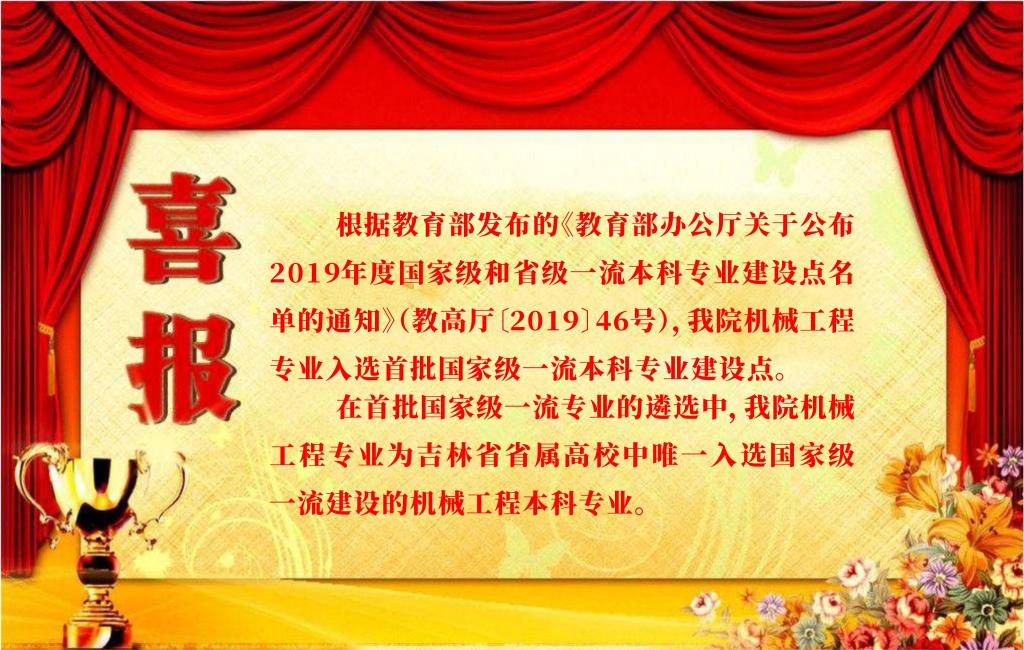 在首批国家级一流专业的遴选中,公司机械工程专业为吉林省省属高校中唯一入选国家级一流建设的机械工程本科专业。