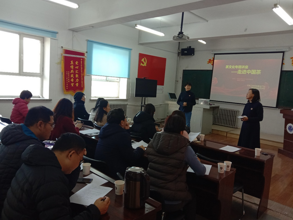 杨静达老师作为高级茶艺师、高级评茶员,以其专业的知识、鲜活的案例,从茶叶的起源和历史、茶的成分和功用、茶的用器和用水、茶文化知识等几个方面为我们带来了丰富生动、浅显易懂的茶文化普及讲座。讲座中,老师们了解了茶的诗词、典故,明白到了健康品茶的知识。大家对茶类、茶文化、品茶的方法产生了浓厚的兴趣,并积极参与了有关茶文化的小测验,讲座后还交流了对于茶叶及饮茶的心得体会。整个讲座在一片轻松愉悦的氛围中度过。