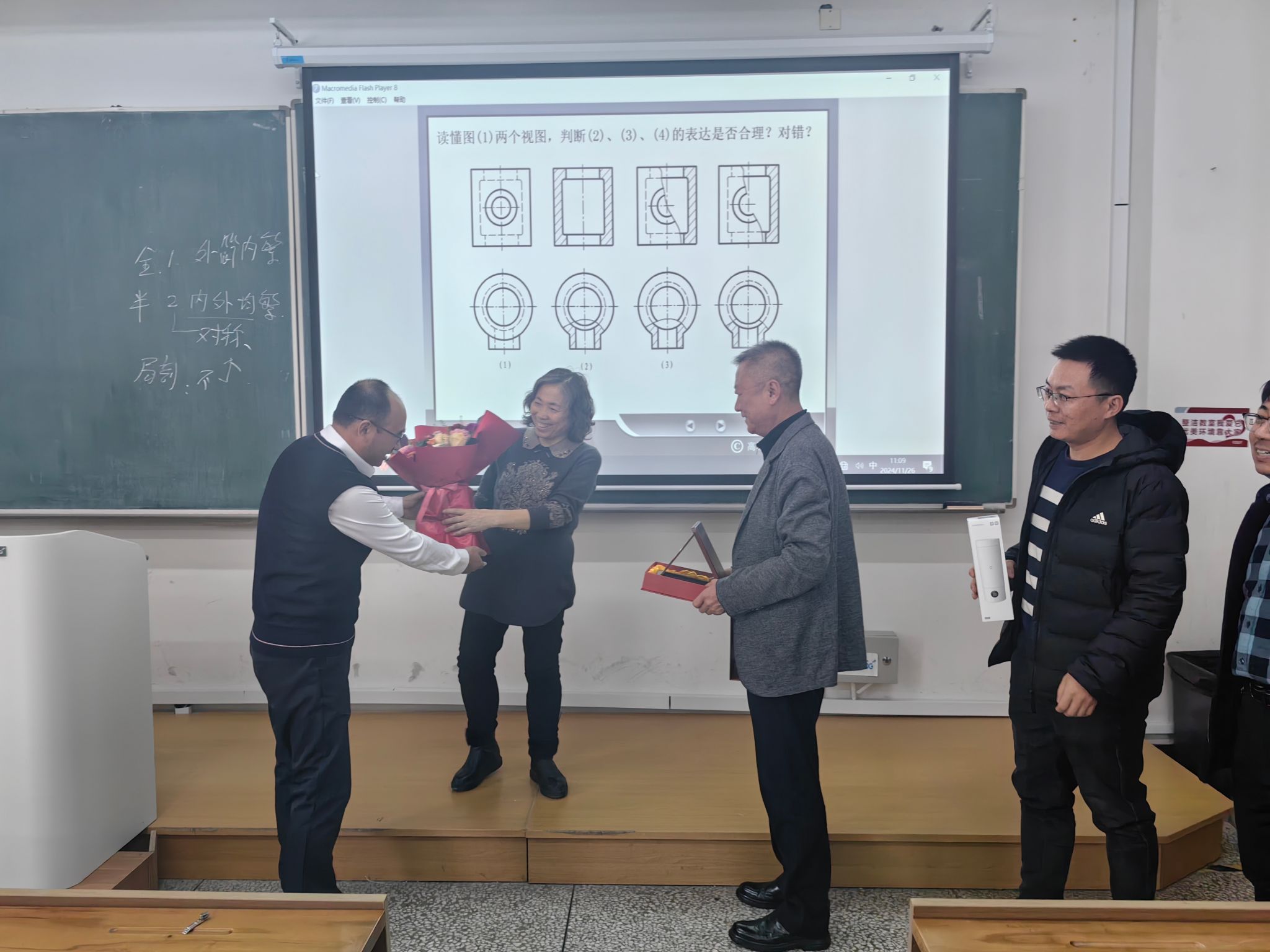 本网讯(通讯员 毛艳)为致敬荣休教师,弘扬师德力量,传承育人使命,11月26日,在宫百香、李会杰两位教师执教生涯的最后一节课上,伟德victor1946为其精心筹备了一场温馨的“最后一课”荣休仪式。公司党委书记张利军、经理郝兆朋、副经理谷东伟、副经理卢明明、机械基础教学中心主任刘小勇一起来到课堂,与全体上课员工共同见证了这一光荣时刻并送上美好祝愿。