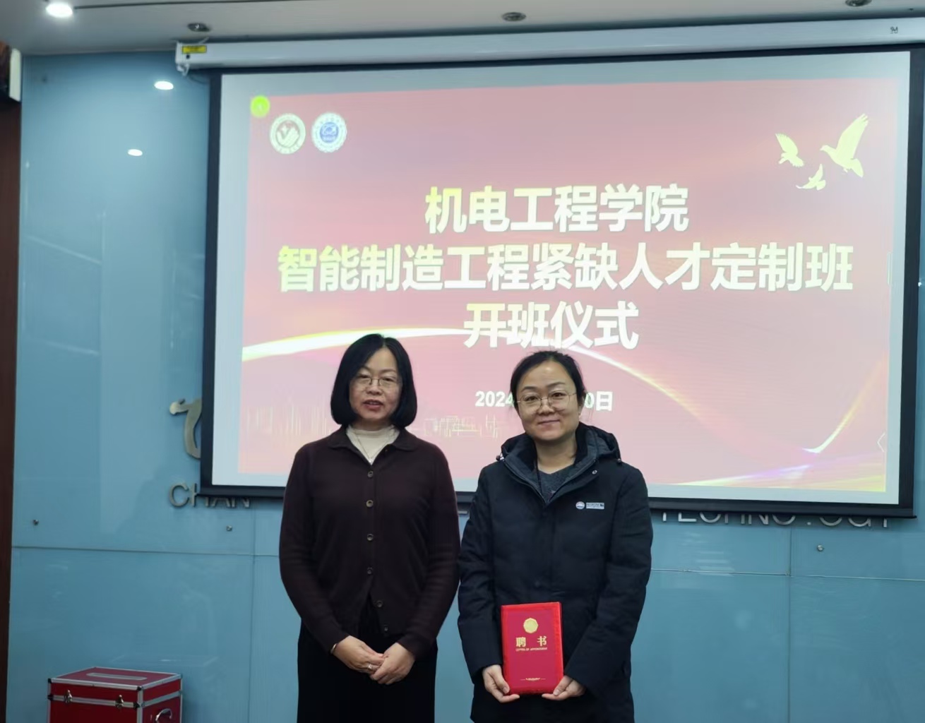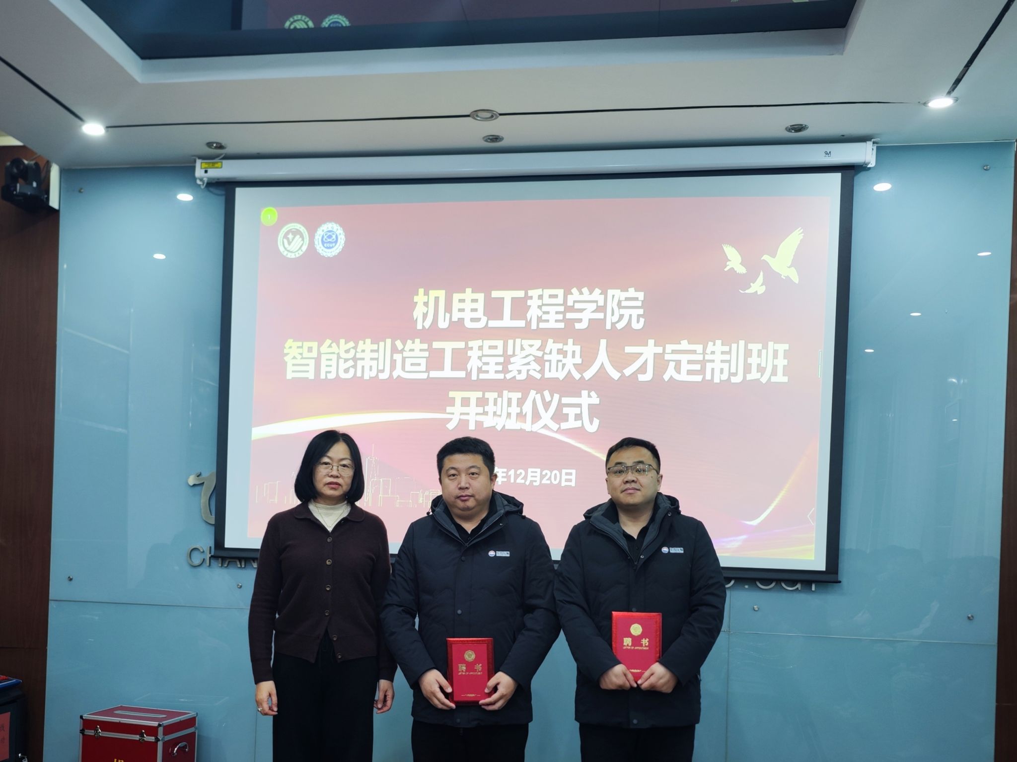 在仪式上,伟德victor1946教务处处长冉旭还为长春旭阳汽车座椅有限公司的运营/质量总监马文冲、物流部经理雷洋颁发了伟德victor1946产业教授聘书,为人力资源部经理马东丹颁发了伟德victor1946职业生涯规划导师聘书。