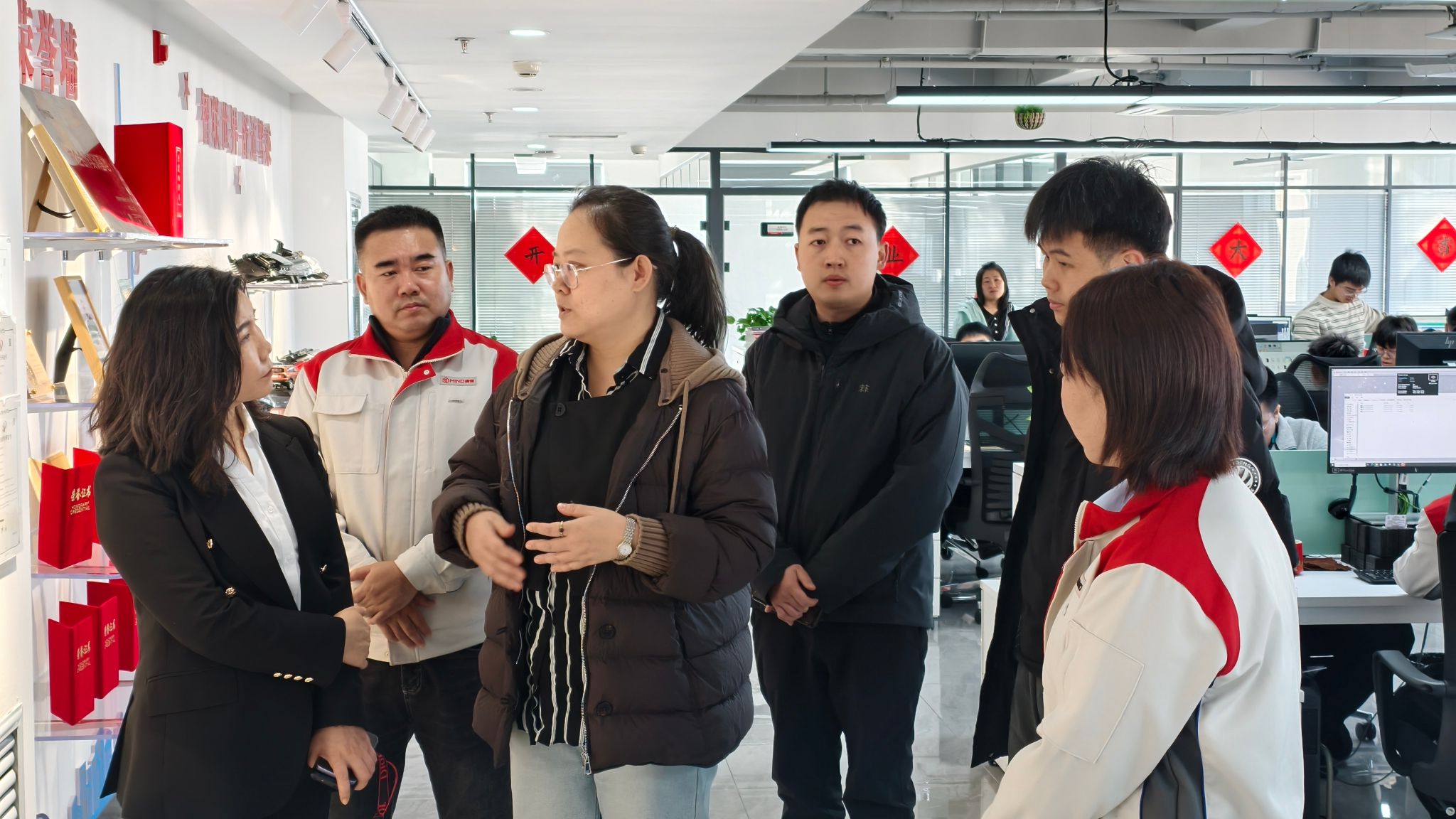 一行人参观曼德电子电器长春分公司的办公环境,详细了解了企业文化。