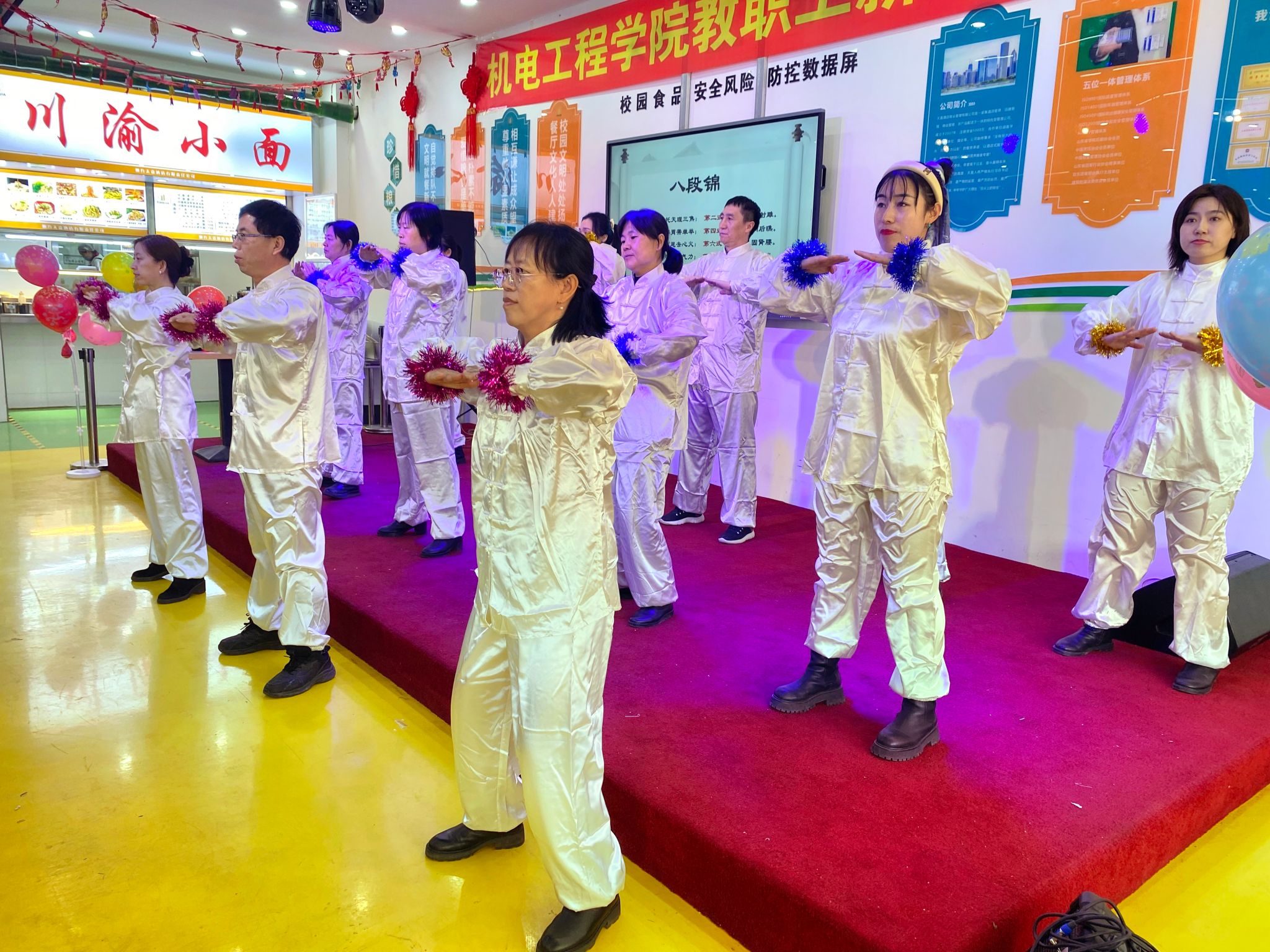 在年底公司联欢会上,晨练团队的精彩表演成为亮点。老师们身着统一服装,将八段锦“柔和缓慢、圆活连贯”的特点展现得淋漓尽致,收获了全场阵阵掌声。这次表演不仅展示了三个月来的学习成果,更让更多人了解到这一传统养生法的独特魅力。