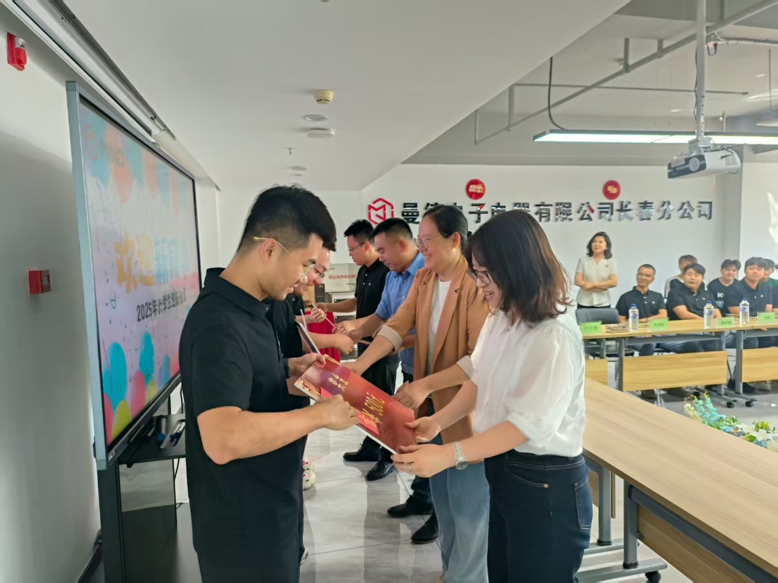 交流座谈现场,新入职曼德光电的公司毕业生代表赵一博等人,在现场分享了从校园学习到职场实践的成长感悟。他们结合自身工作经历,讲述了在企业的培养下如何将专业知识转化为实际工作能力,同时也感谢公司与企业为毕业生搭建的优质发展平台。此外,公司代表还受邀参加了企业为新入职员工精心准备的迎新仪式,进一步增进了校企双方的情感联结。