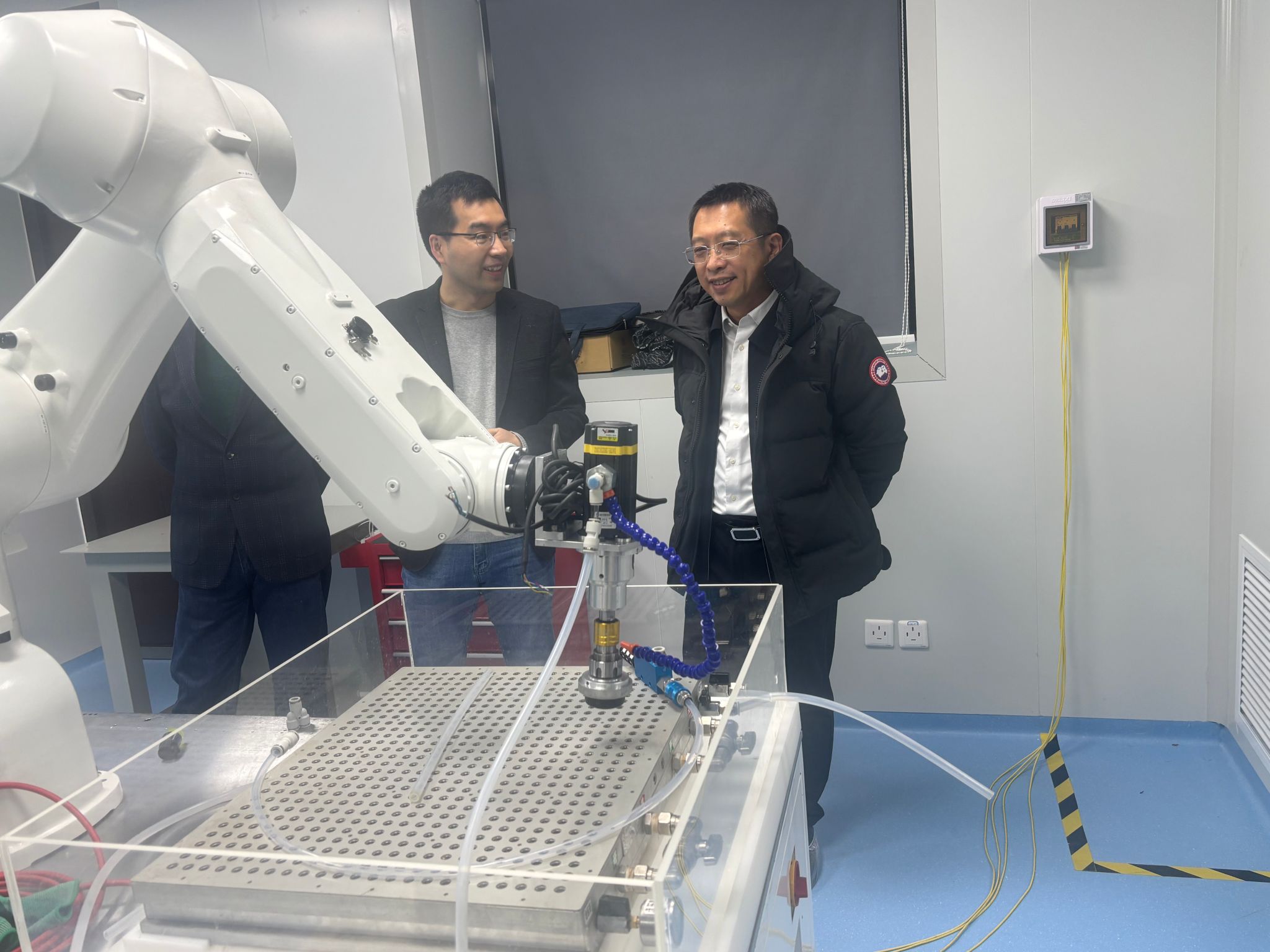 随后,在吉林省微纳与超精密制造重点实验室,付董事长重点了解了大型复杂模具曲面精加工技术的产业化应用成效,仔细察看了核心实验设备运行及科研成果转化情况,针对实验室在行业痛点难点问题解决中的技术突破细节与科研人员深入交流。在本科教学实验场所,付董事长结合学科人才培养需求,关注了实验教学与科研实践的融合情况,强调要以科研赋能教学,提升员工创新实践能力。