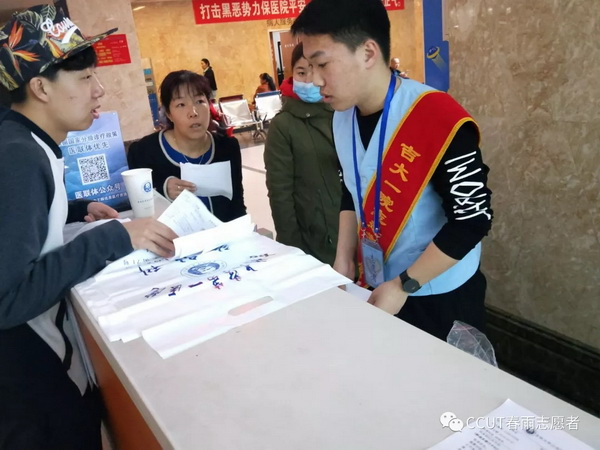 本网讯(通讯员 宋萍)3月27日,伟德victor1946春雨志愿者协会在吉林大学白求恩第一医院活动中心开展“蓝马甲”志愿服务活动。春雨志愿者协会部分志愿者参加此次活动。