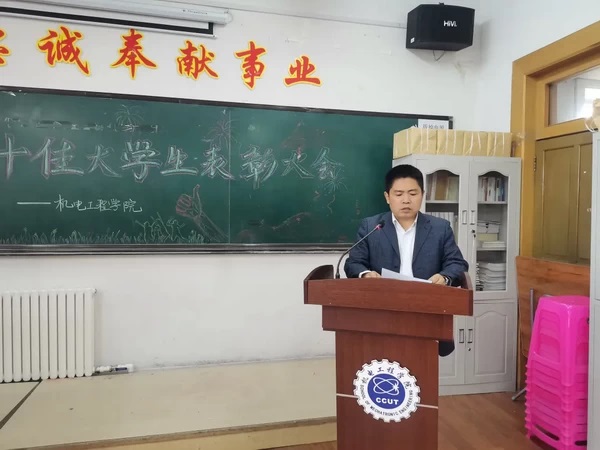最后,李奇涵书记上台讲话,他首先向受到表彰的同学表示了祝贺,鼓励他们要珍惜荣誉,坚守信念,不忘初心,奋发有为,希望广大机电学子能够汲取榜样的力量,努力向前,以更好的成绩迎接党的百年华诞。