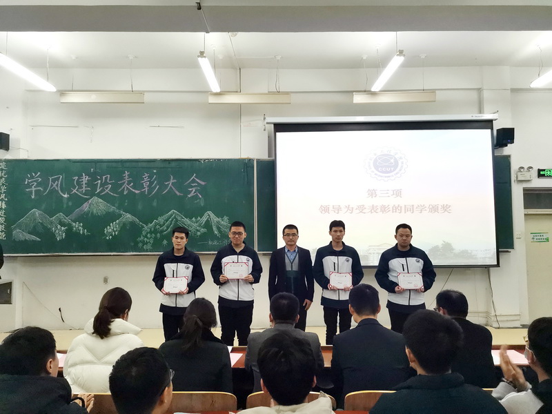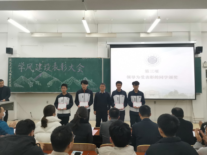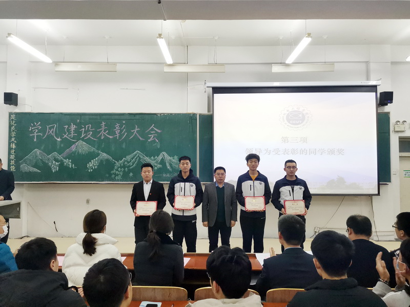 大会在嘹亮的国歌声中拉开序幕。公司党委副书记黄向东宣读表彰决定,经过公司评定,授予190101班等5个班级学风建设“优良学风班”荣誉称号;授予1栋123等13个寝室学风建设“优良寝室”称号;授予190102班王瑶迪等12只学习小组 “优秀学习小组”称号;授予180106班李兰珂等31名同学“学习标兵”荣誉称号,授予190101班王靖然等17名同学“科研标兵”荣誉称号,授予190101班朱宏达等24名同学学风建设“突出贡献个人”荣誉称号;授予190103班谭鸿强等26名同学学风建设“学习进步奖”;授予180110班张鹤钰等10人“文体活动突出贡献奖”。公司党委书记李奇涵、经理岳晓峰、副书记黄向东及各系主任分别为获奖班级及个人颁奖。